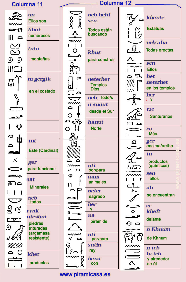 Pulse las imágenes para ver claramente (en otra pestaña) los Jeroglíficos de la Estela del HambreLos egiptólogos han afirmado desde hace tiempo que no existen registros que describan cómo fueron construidas las pirámides.